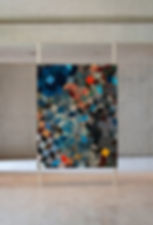 Ink and water-based paints and dye on cotton fabrics, backed with dyed linen, with photos printed on archival canvas on verso