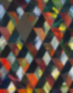 acrylic, ink, and oil paints on denim and twill fabrics, with overdyed denim and twill; cut and sewn